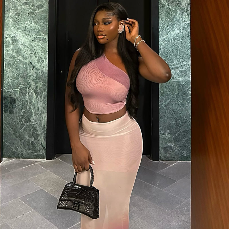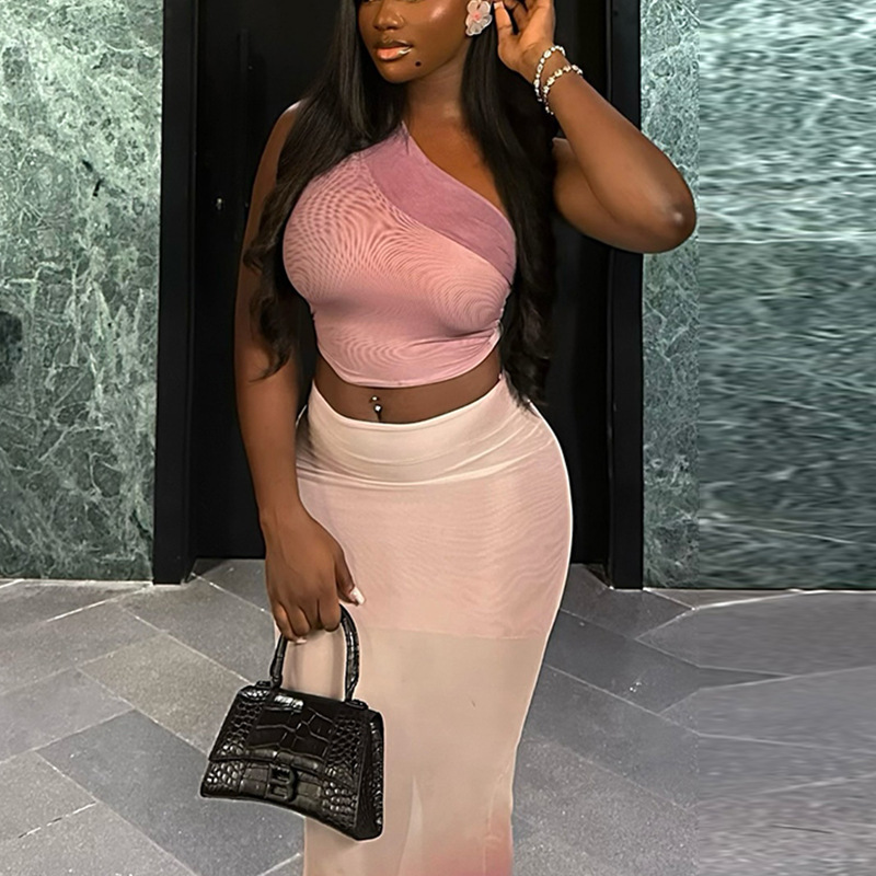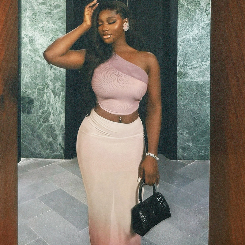 Fashion Women’s Wear Navel Sheath Tight Gradient Color Suit